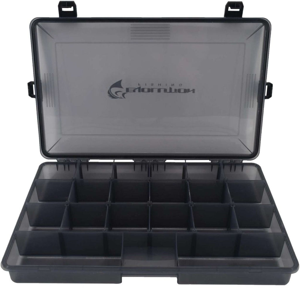Les boîtes de rangement étanches Evolution Outdoor 3700 à 4 fermetures offrent un élégant aspect noir fumé et sont dotées d'un joint étanche qui empêche l'humidité de pénétrer. Leurs 4 fermetures robustes garantissent la sécurité de votre matériel de pêche. Ces boîtes disposent de compartiments modulables et flottent sur l'eau. Rangez tous vos appâts au même endroit, en toute simplicité, et profitez pleinement de votre partie de pêche.